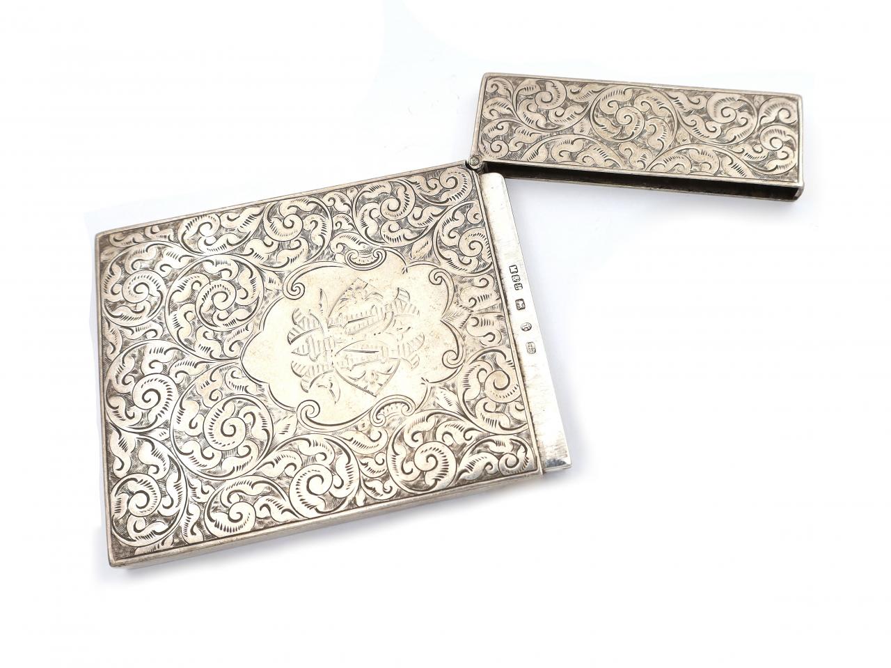 1893 sterling silver hinged box with foliate engraving. Hallmarked sterling silver, Birmingham, 1893.