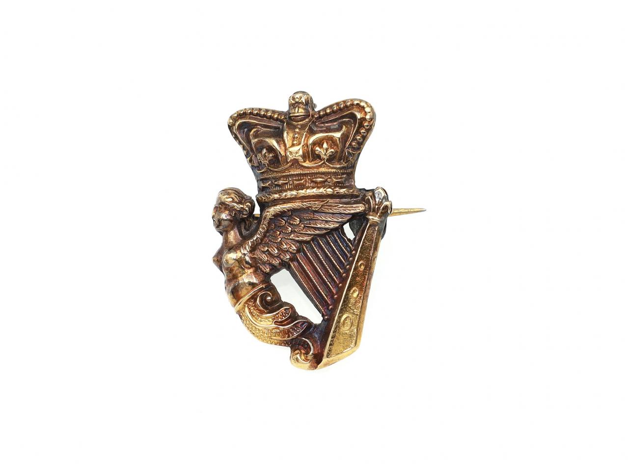 1893 Victorian harp, winged Hibernia and crown brooch in 18kt yellow gold. A hollow openwork brooch in the form of a winged Hibernia, harp and crown, fitted to the reverse with a hinged pin and closure. Hallmarked 18kt gold, Birmingham, 1893.