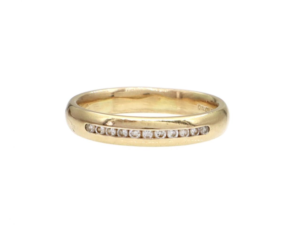 18kt yellow gold and diamond channel set half eternity ring. Hallmarked 18kt gold.