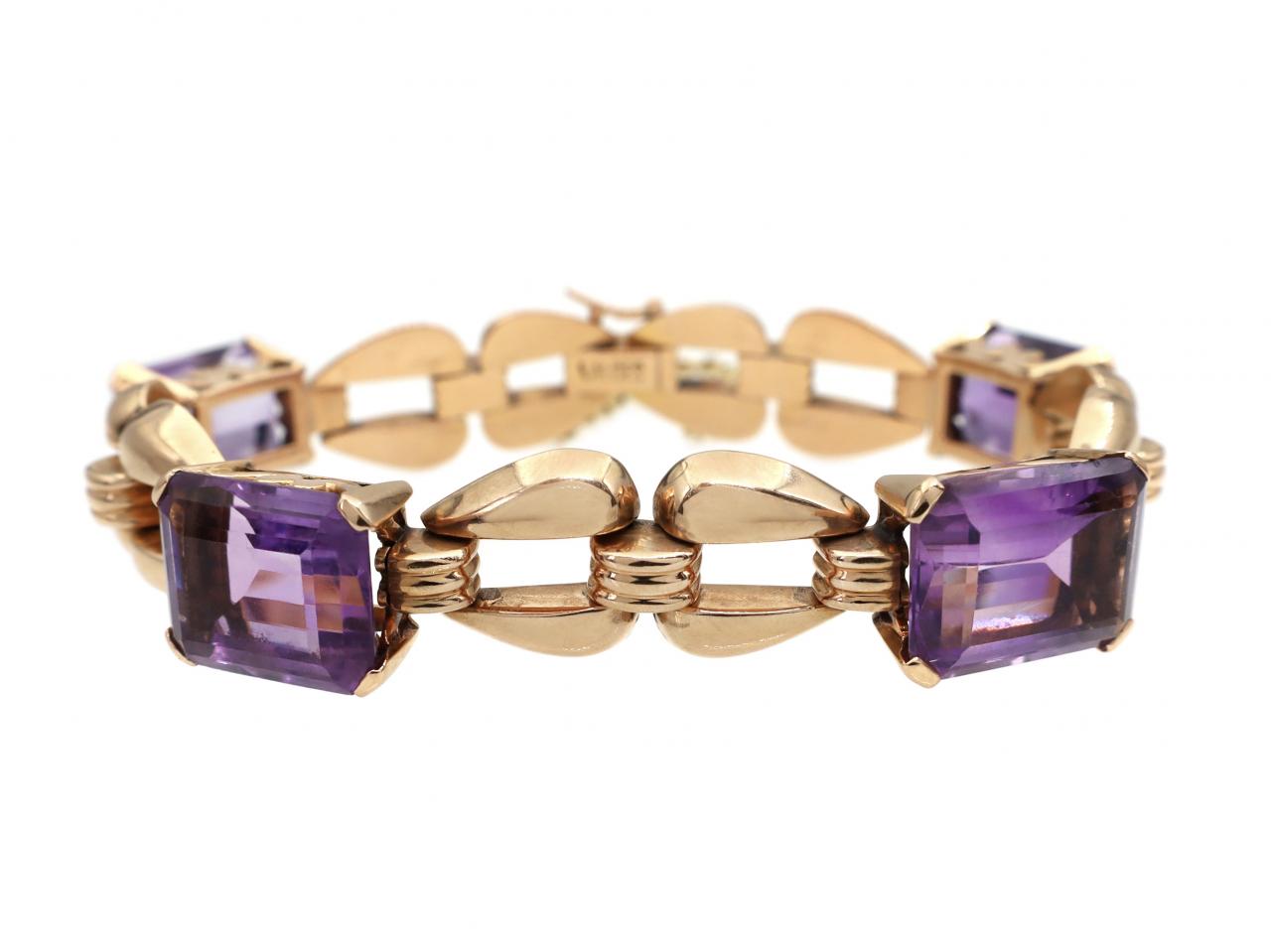 1940s amethyst and 18kt yellow gold open link bracelet.