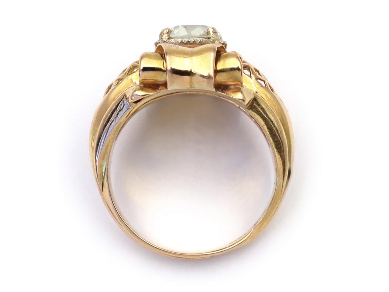 1940s cushion shape diamond engagement ring in 18kt yellow gold