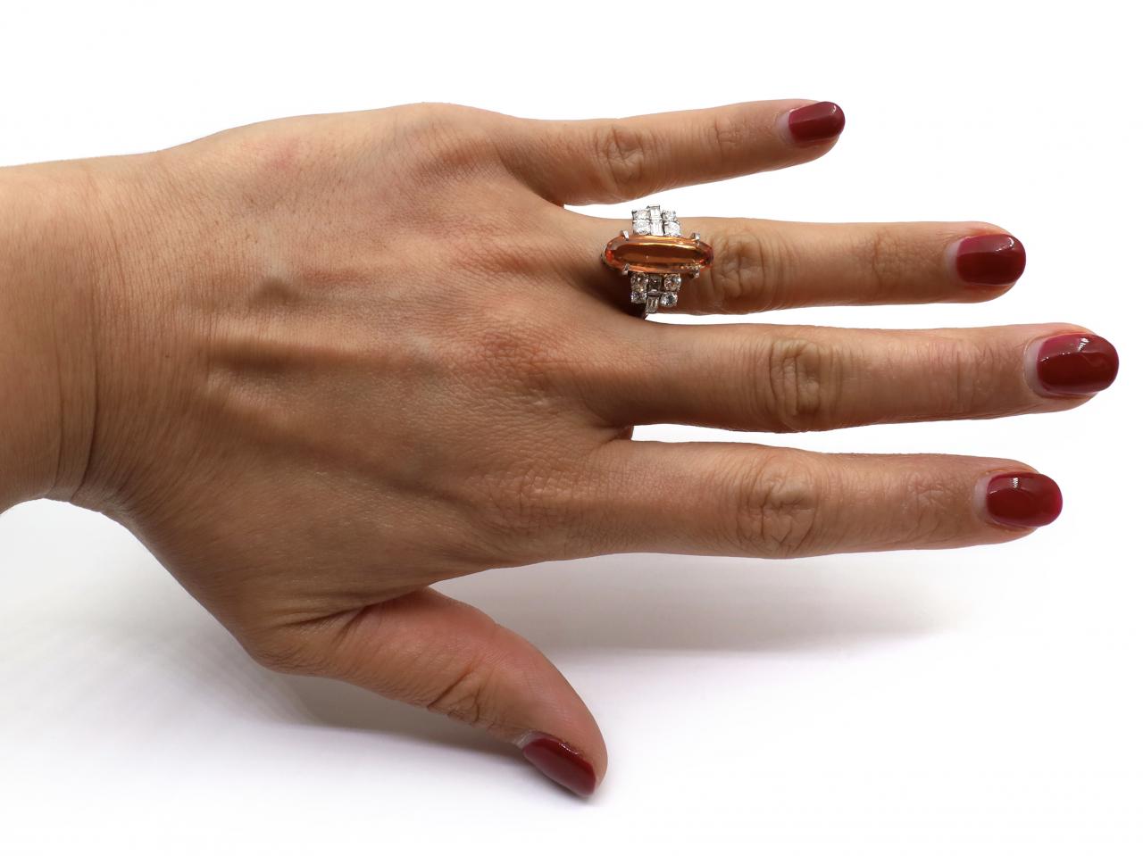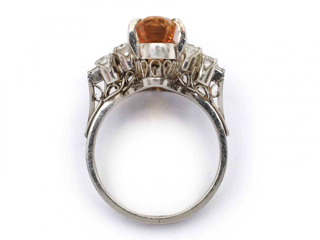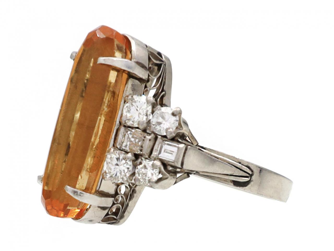 1950s Imperial topaz and diamond cocktail ring in platinum.