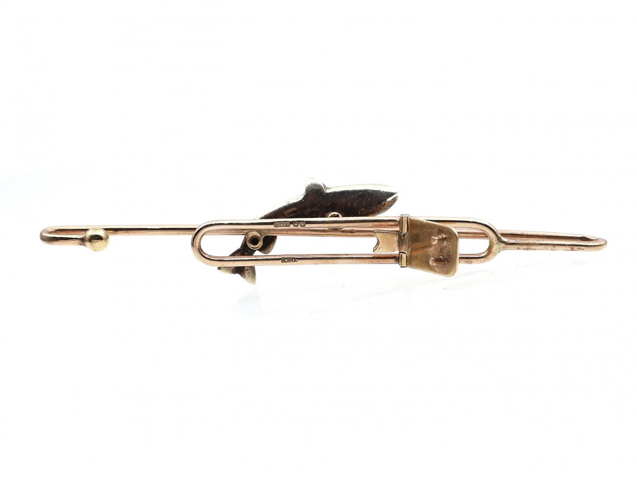1965 9kt yellow gold tie slide with an enamel brown trout.