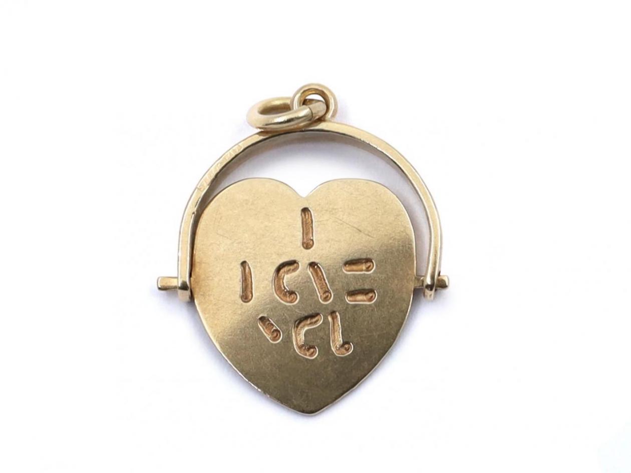 1966 'I LOVE YOU' heart spinner pendant in 9kt yellow gold.