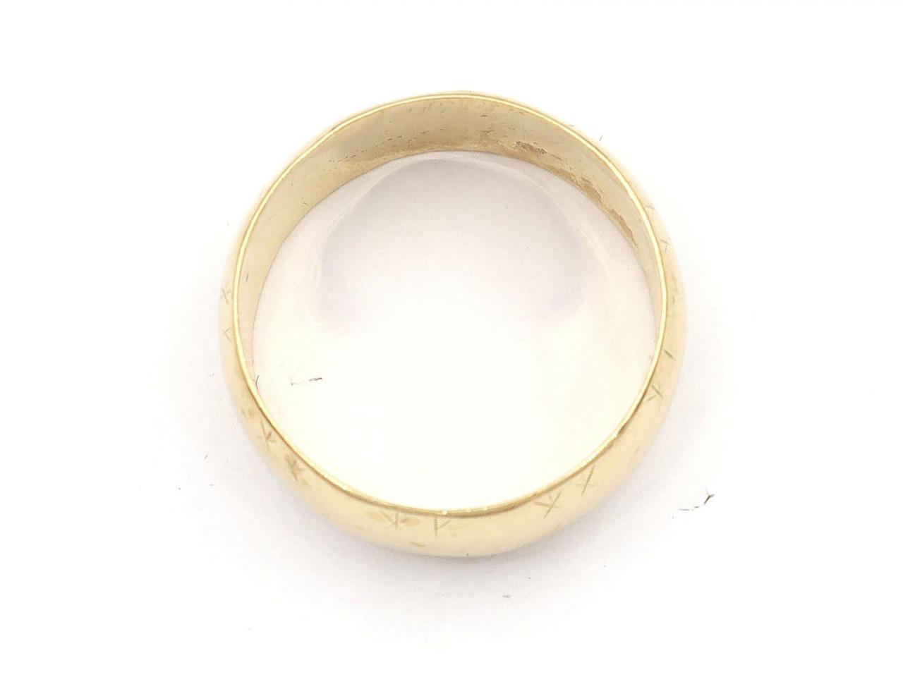 1966 vintage 8mm wedding band in 18kt yellow gold. Hallmarked 18kt gold, London, 1966.