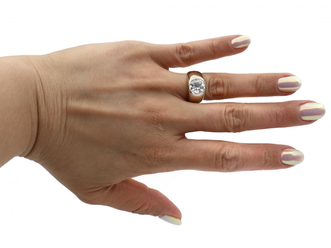 2.75ct Old Mine cut diamond and 18kt white gold solitaire ring. Set with an estimated 2.75ct cushion shape Old Mine cut diamond in a rubover setting, to a bezel set signet style ring featuring a smooth border integrated shoulders and broad polished shank. Hallmarked 18kt gold, Italian.