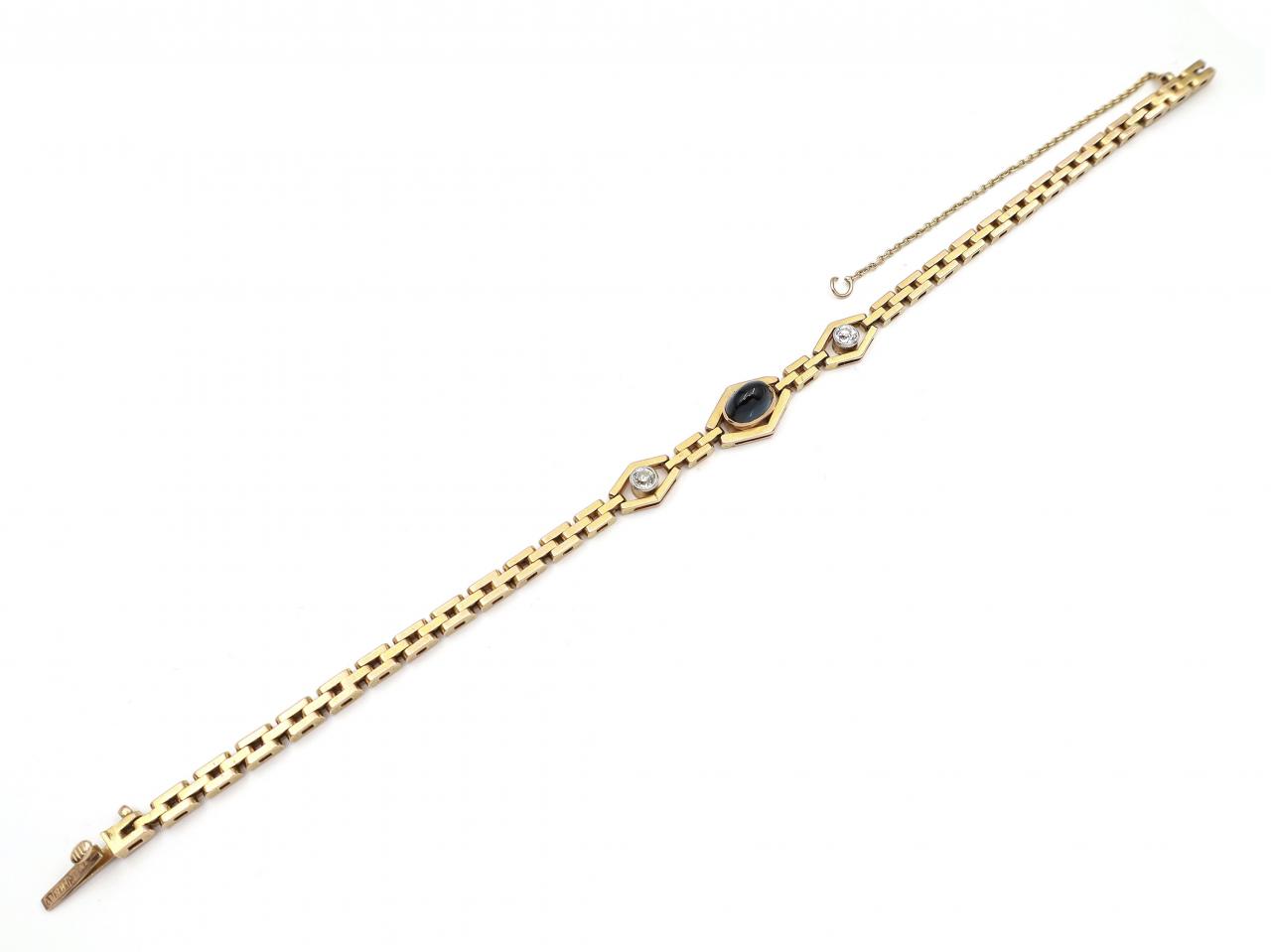 Antique 15kt yellow gold cabochon sapphire and diamond bracelet