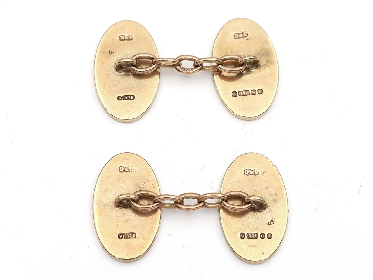 Antique 9kt rose gold oval engine turned cufflinks. Hallmarked 9kt gold, Birmingham.