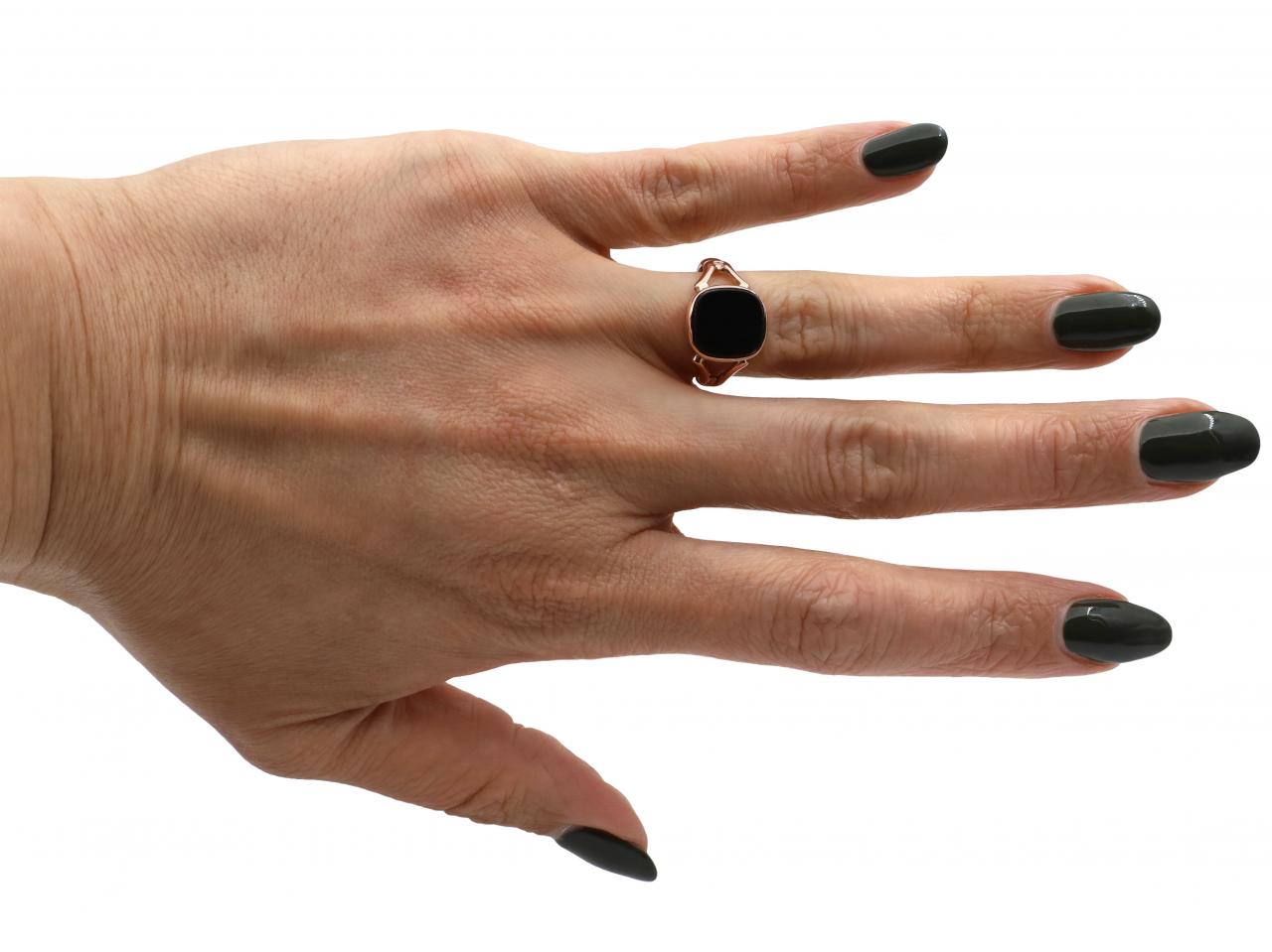 Antique cushion shape onyx signet ring in 9kt rose gold
