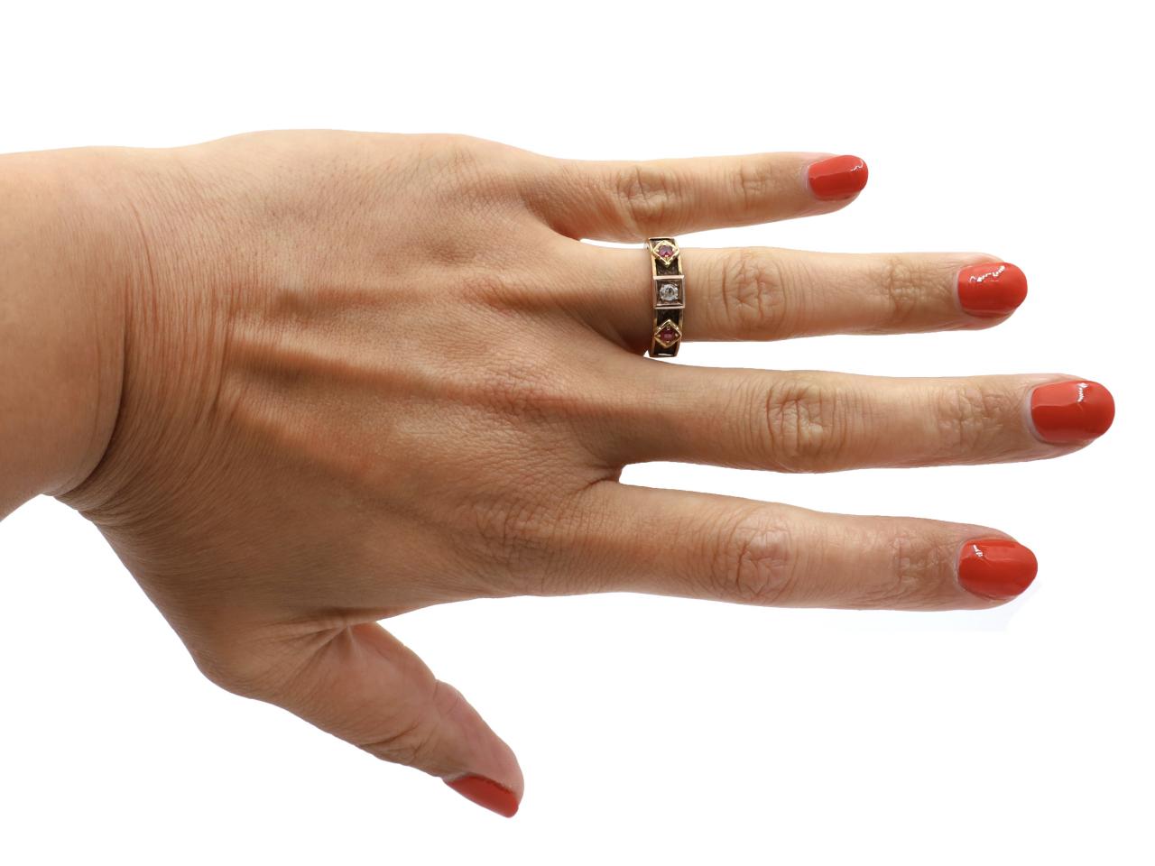 Antique diamond, ruby and hair memorial ring in 18kt yellow gold.