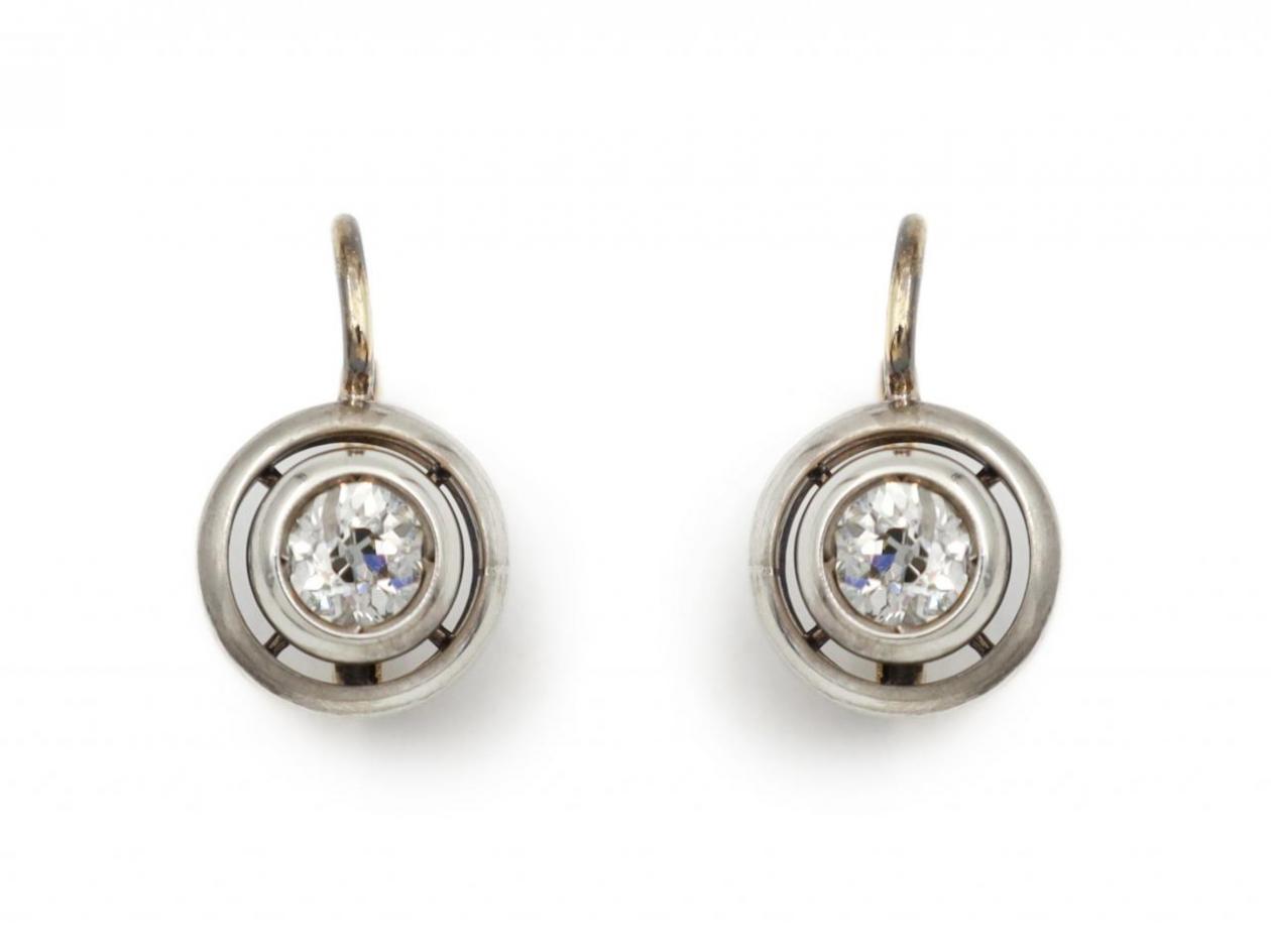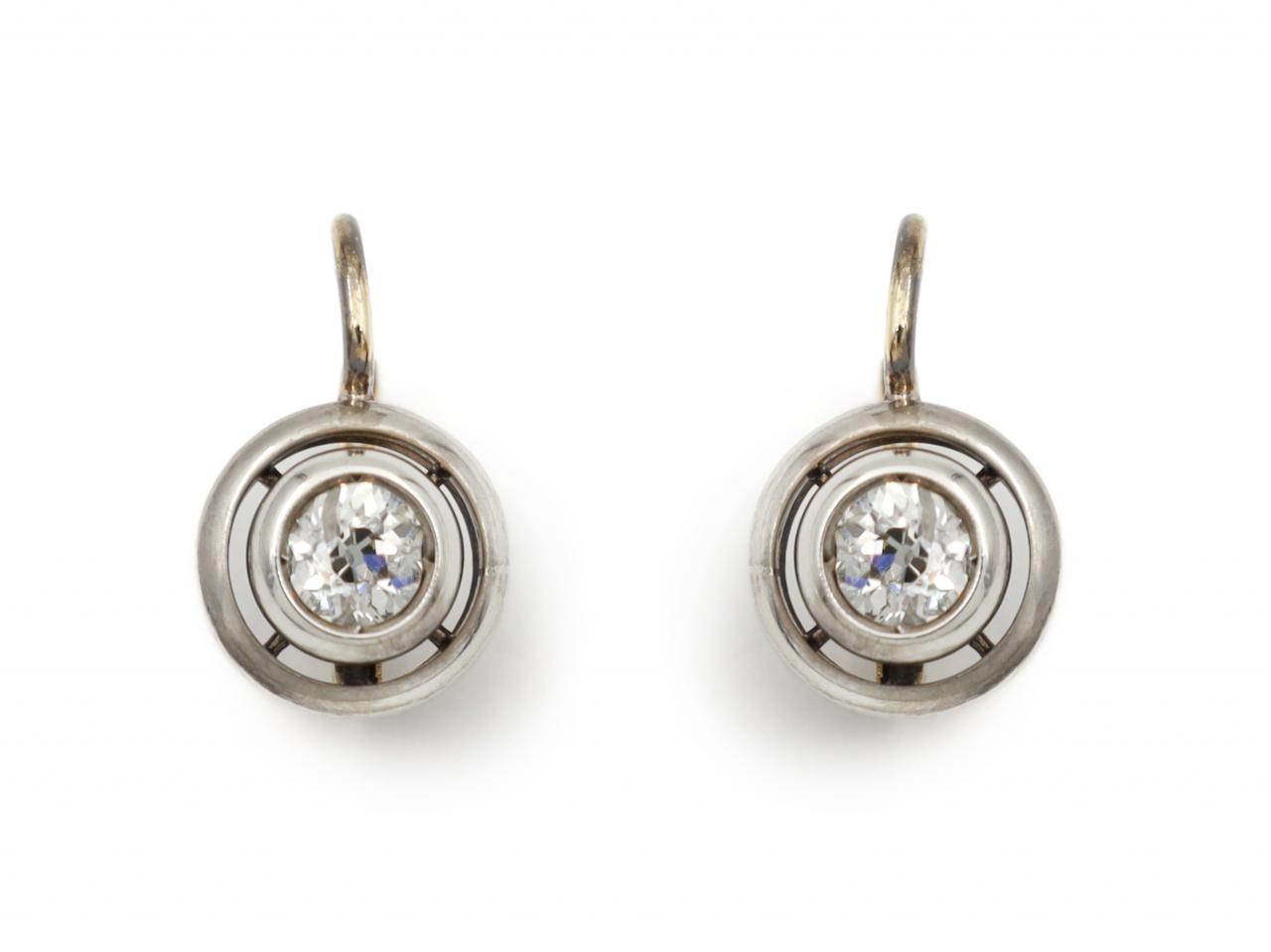 Antique diamond set drop earrings in 18kt yellow gold