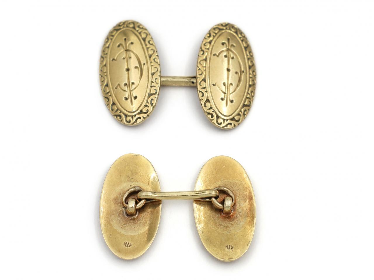 Antique Double Oval Engraved Cufflinks in 18kt Yellow Gold