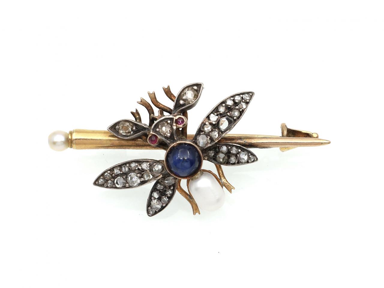 Antique French sapphire, diamond and pearl bug brooch Antique French sapphire, diamond and pearl bug brooch