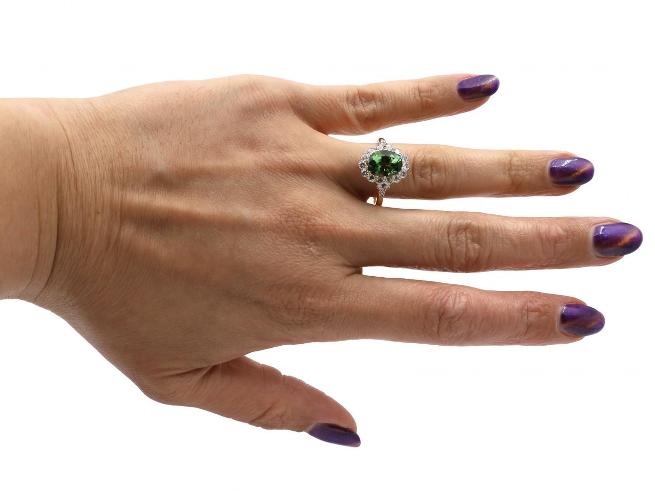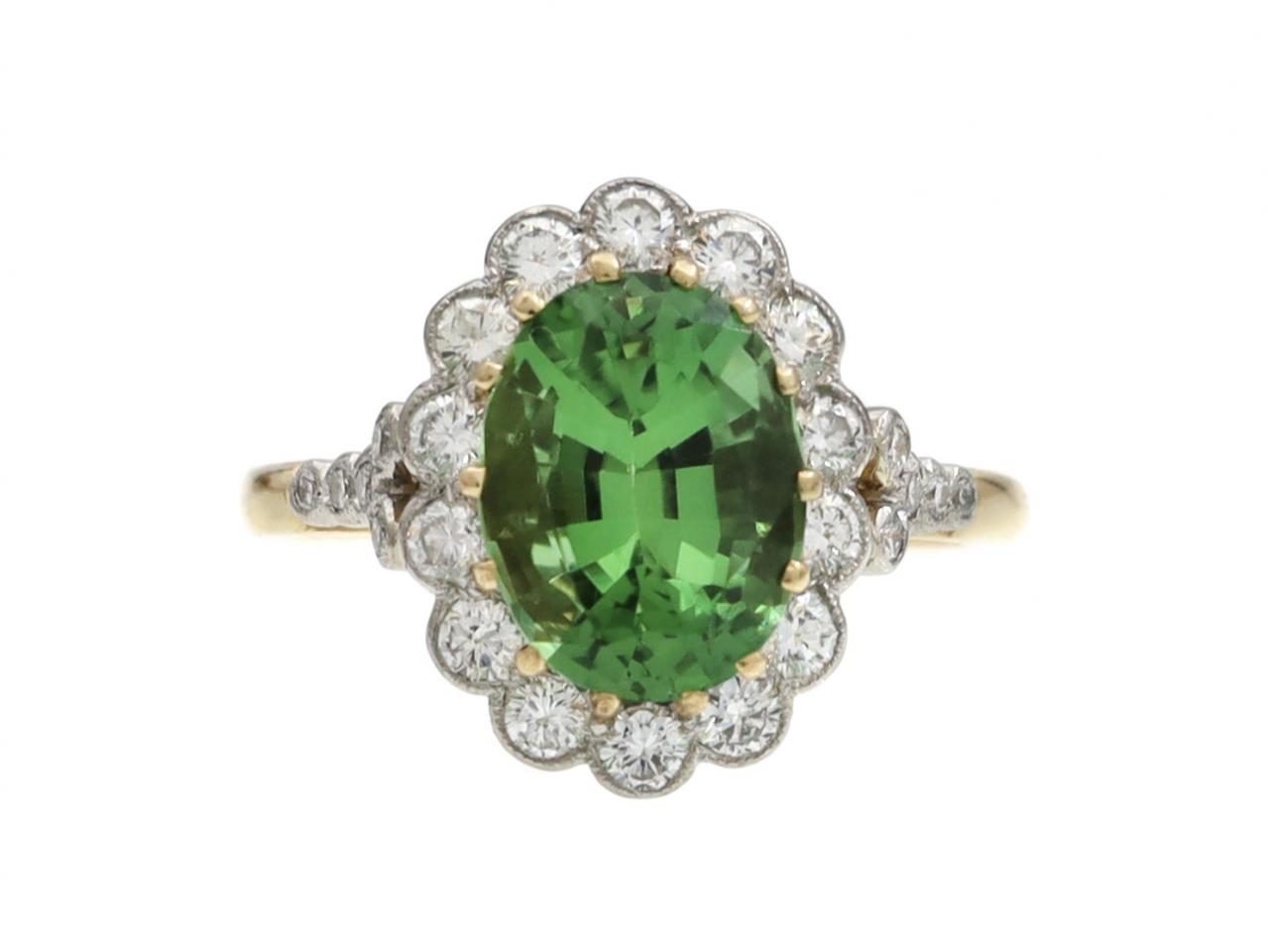 Vintage green tourmaline and diamond floral cluster ring Vintage green tourmaline and diamond floral cluster ring Vintage green tourmaline and diamond floral cluster ring