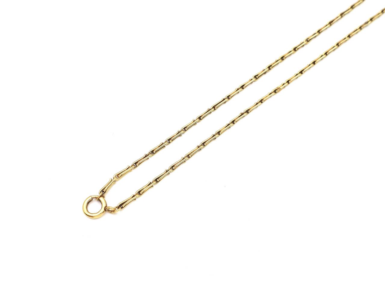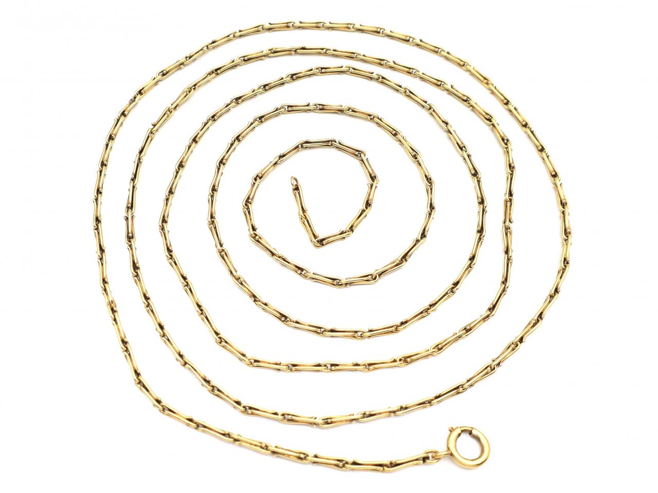 Antique hayseed 15kt yellow gold chain. A long repeating hayseed link fitted with a bolt ring closure.