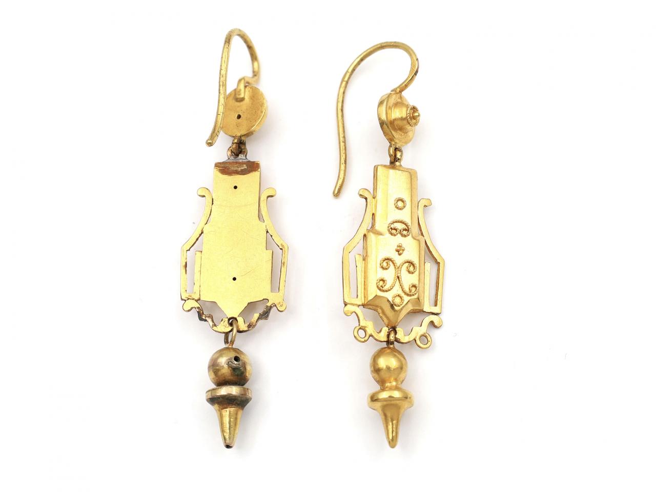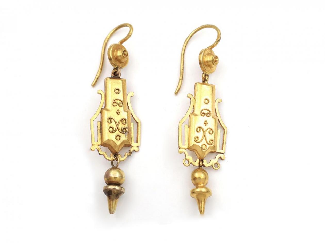 Antique Italian Etruscan revival drop earrings in 18kt yellow gold.