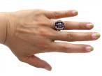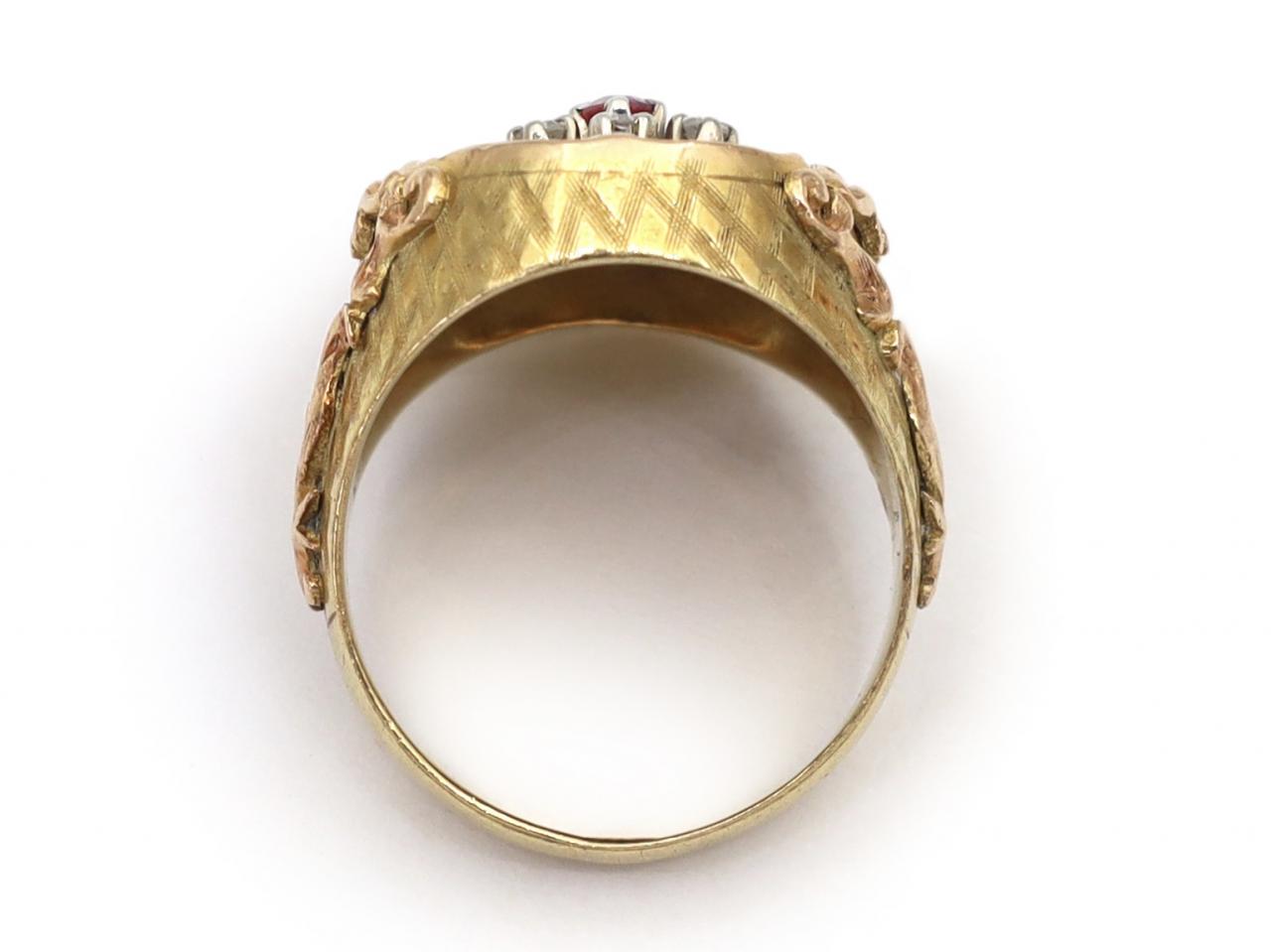 Antique Italian ruby diamond and royal blue enamel cluster ring in 18kt gold. An oval concave plaque.