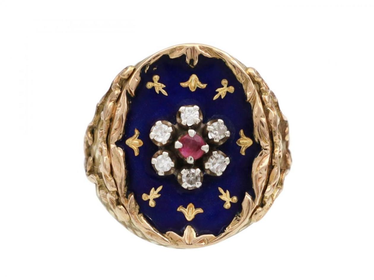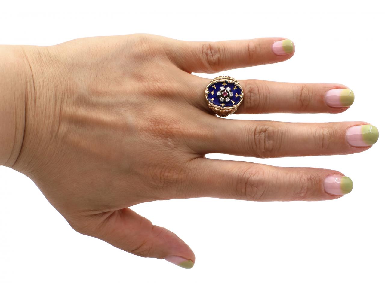 Antique Italian Ruby Diamond & Royal Blue Enamel Cluster Ring Antique Italian Ruby Diamond & Royal Blue Enamel Cluster Ring Antique Italian Ruby Diamond & Royal Blue Enamel Cluster Ring