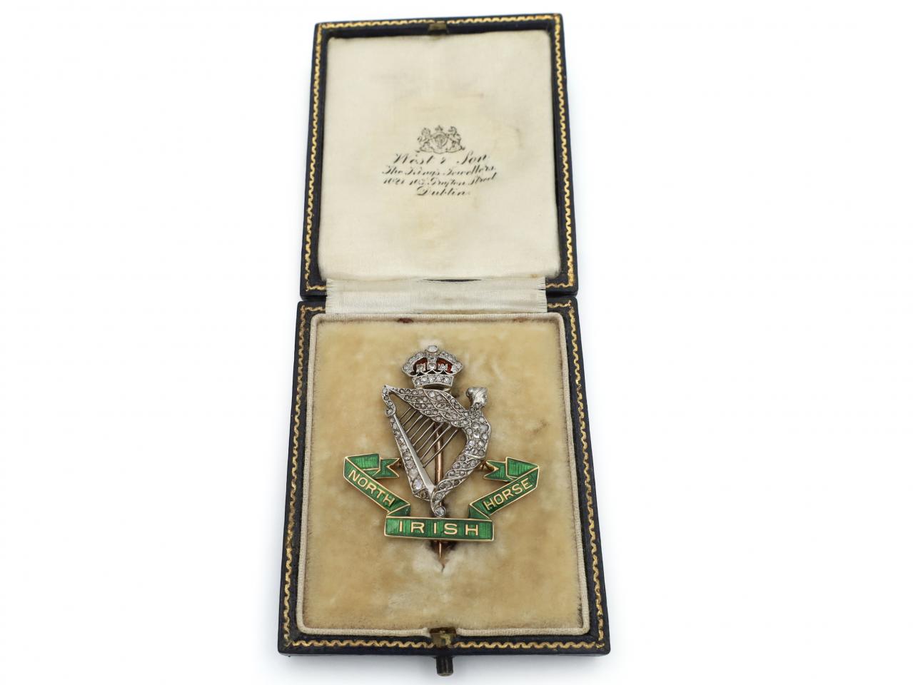 Antique North Irish Horse Military sweetheart brooch in platinum and yellow gold.