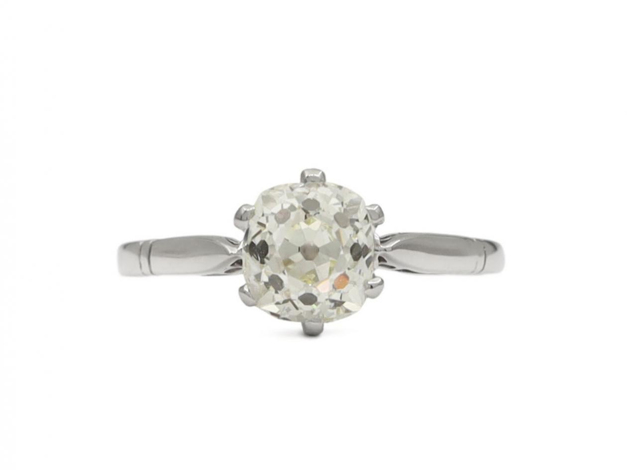 Antique Old Mine cushion cut diamond solitaire engagement ring
