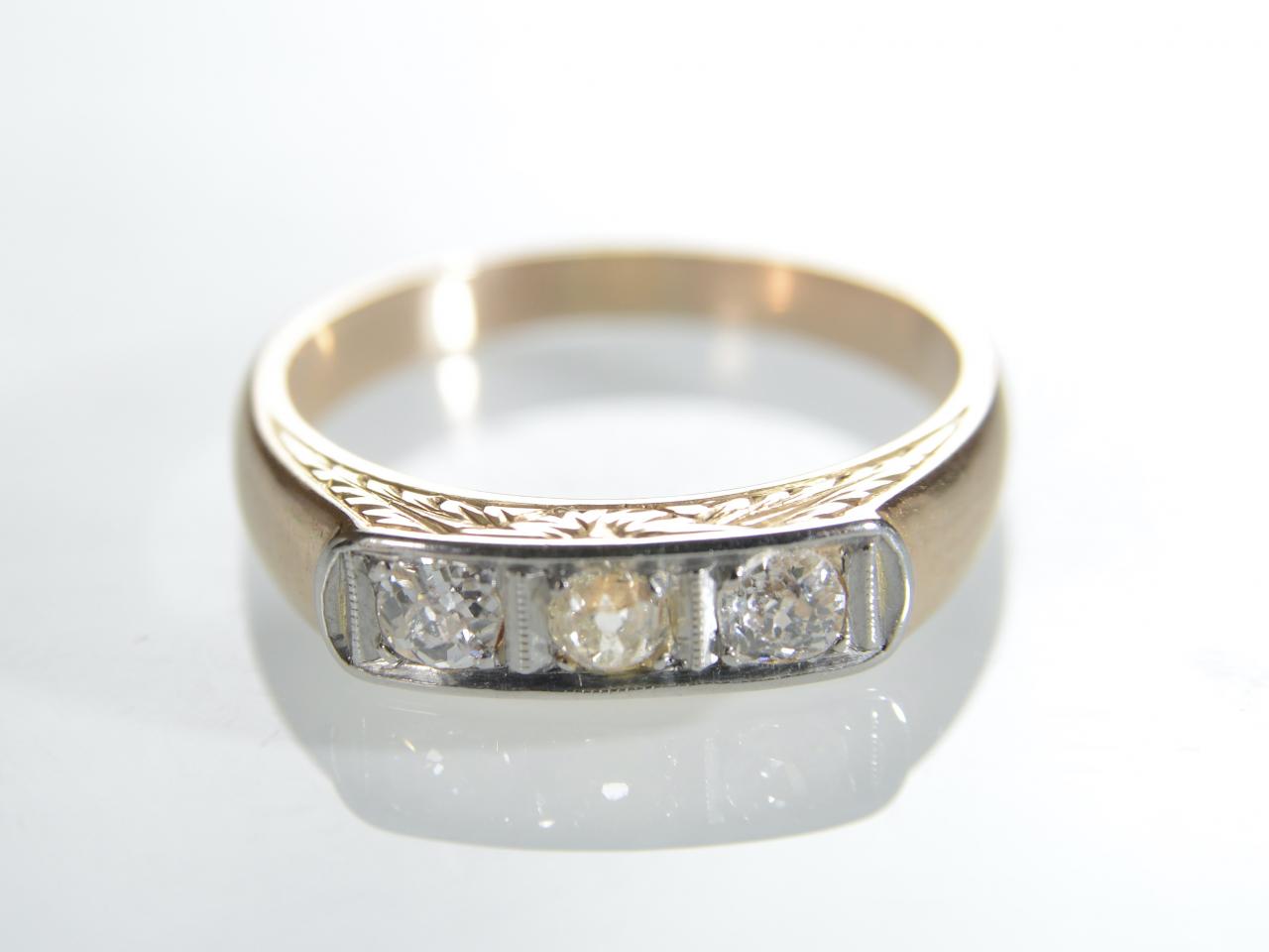 Art Deco diamond three stone band in 18kt yellow gold Art Deco diamond three stone band in 18kt yellow gold Art Deco diamond three stone band in 18kt yellow gold Art Deco diamond three stone band in 18kt yellow gold