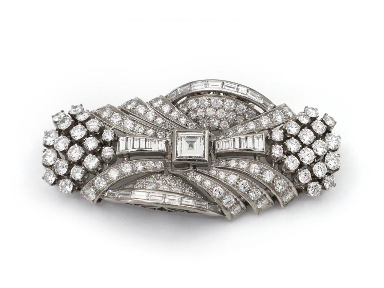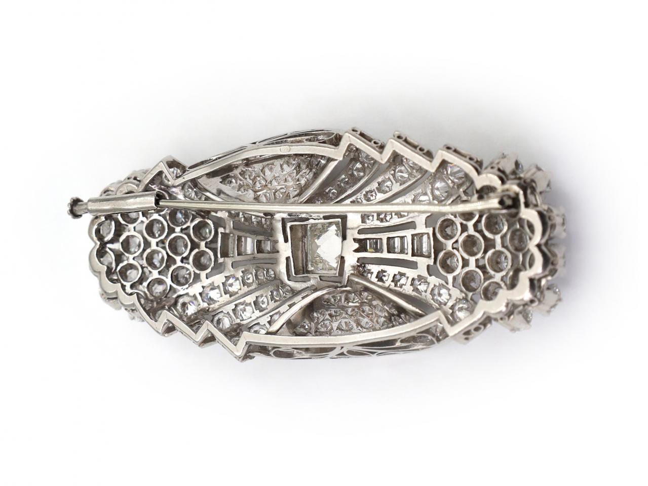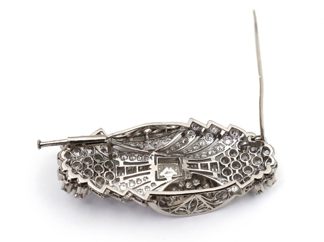 Art Deco multi diamond cut cluster brooch in platinum. Marked platinum.