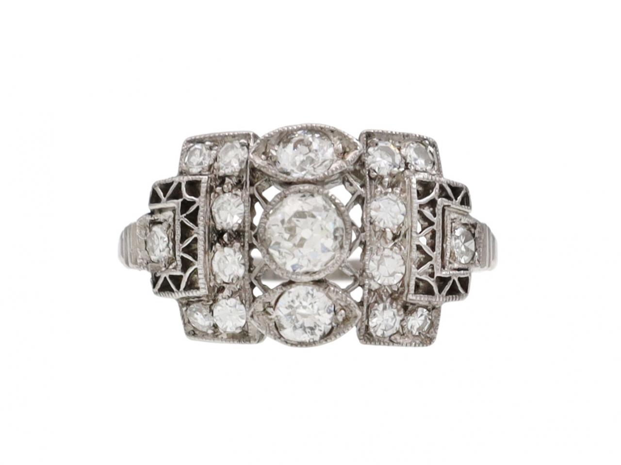 Art Deco platinum diamond set horizontal plaque ring Art Deco platinum diamond set horizontal plaque ring
