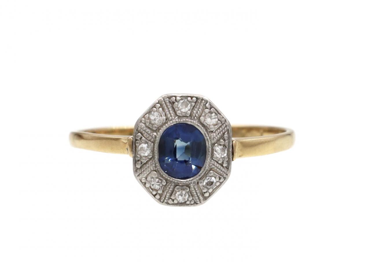 Art Deco Sapphire & Diamond Octagonal Cluster Ring Art Deco Sapphire & Diamond Octagonal Cluster Ring Art Deco Sapphire & Diamond Octagonal Cluster Ring
