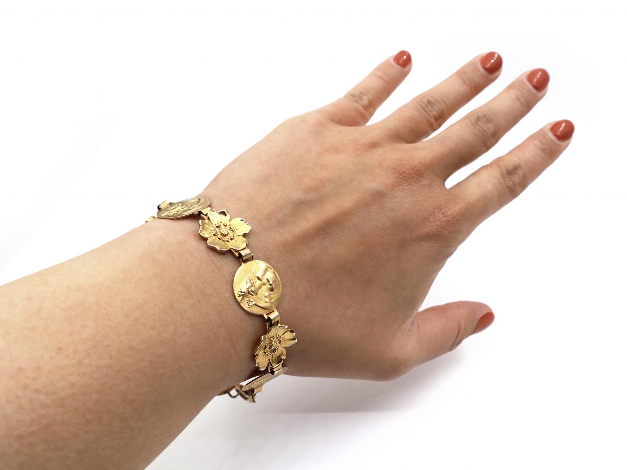 Art Nouveau flower and femme portrait bracelet in 18kt yellow gold Art Nouveau flower and femme portrait bracelet in 18kt yellow gold Art Nouveau flower and femme portrait bracelet in 18kt yellow gold Art Nouveau flower and femme portrait bracelet in 18kt yellow gold