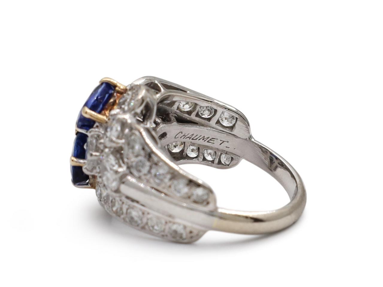 Chaumet sapphire and diamond two stone twist ring in platinum.