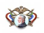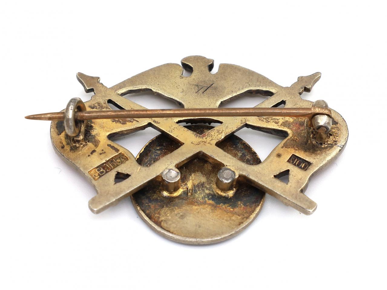 Commemorative South African brooch with medallion of President Kruger in silver with flags of Transvaal. Hallmarked JNBG, 900, EB.