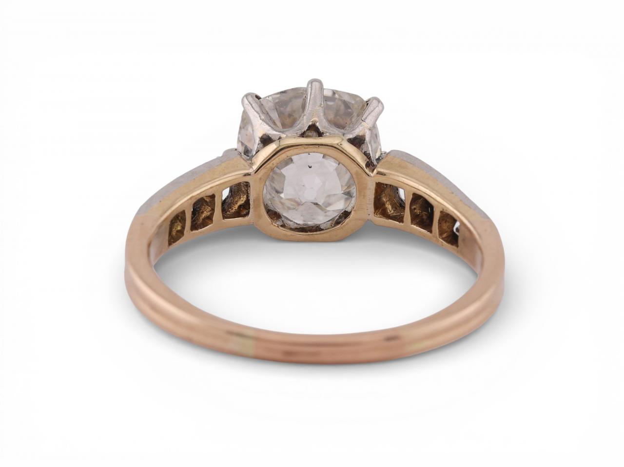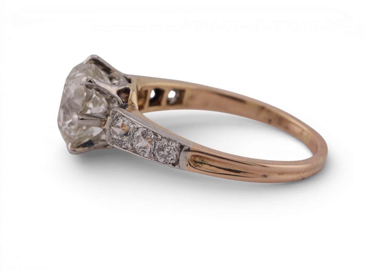 Cushion cut diamond engagement ring weighing approx 2.98ct. Stunning claw set old cushion cut set with graduated old diamonds in a milgrain setting.