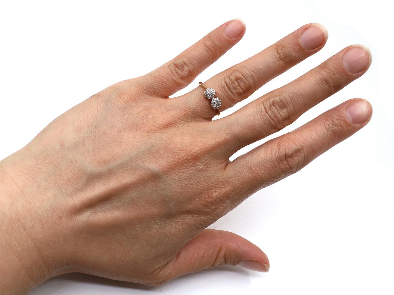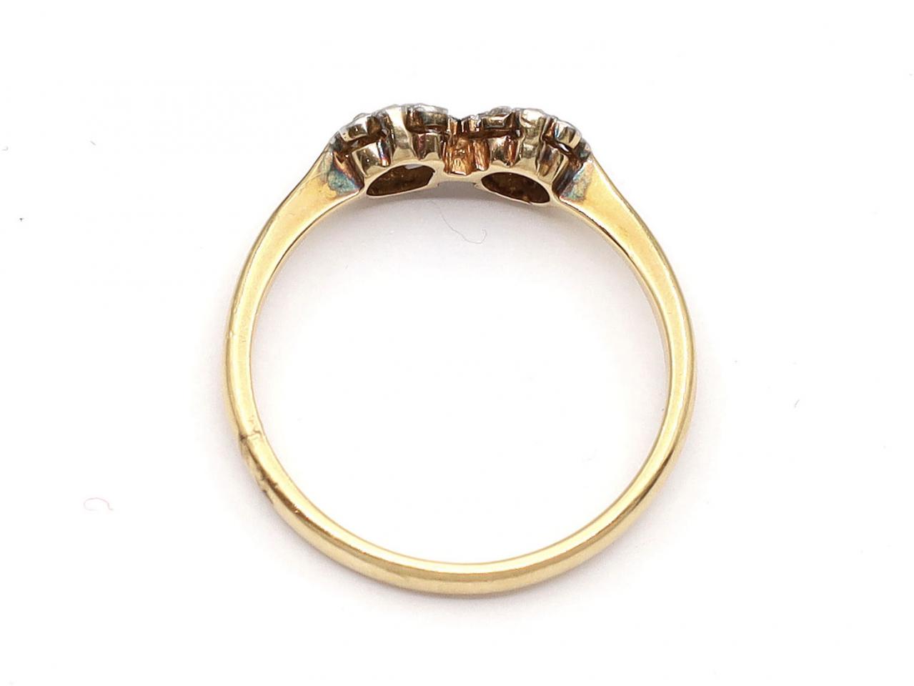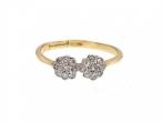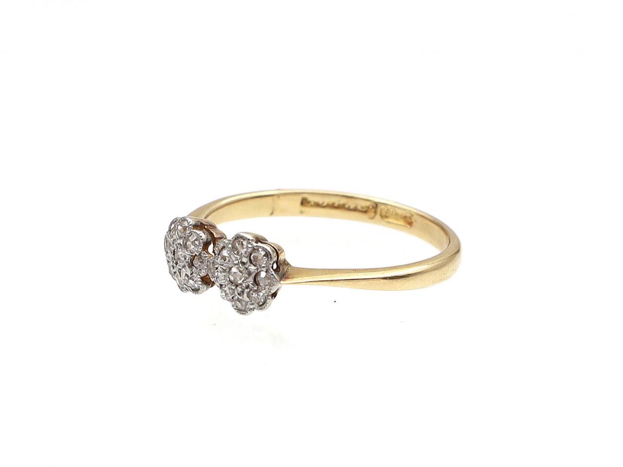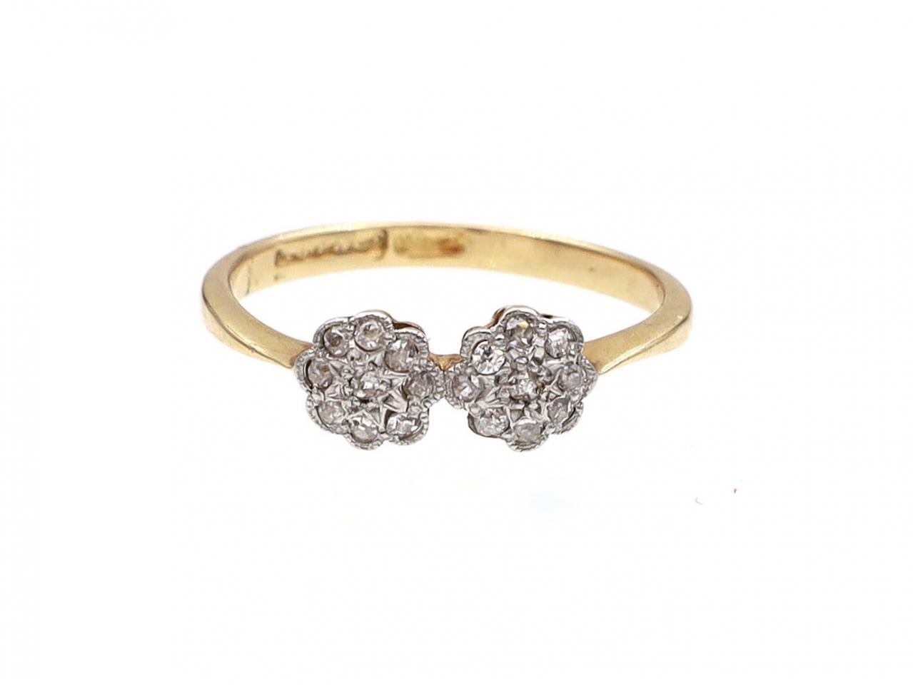 Edwardian diamond double daisy cluster ring in 18kt yellow gold.