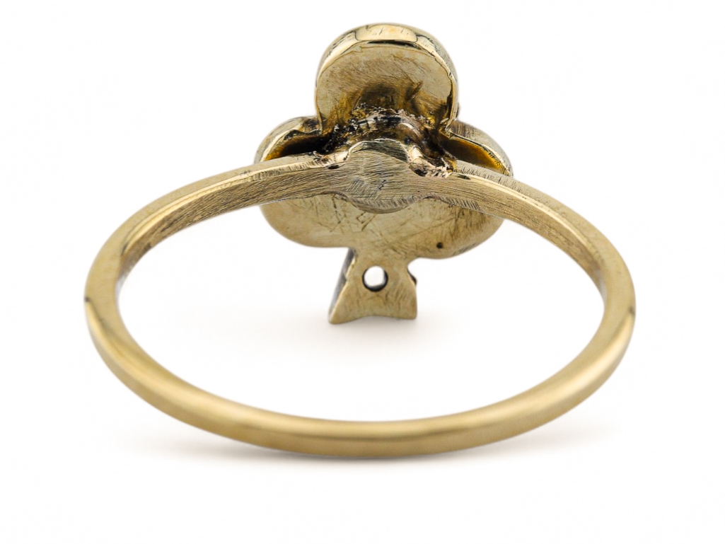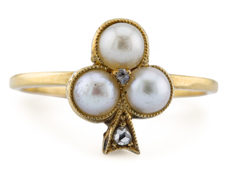 Edwardian Pearl And Rose Cut Diamond Trefoil Ring In 18kt Yellow Gold Edwardian Pearl And Rose Cut Diamond Trefoil Ring In 18kt Yellow Gold Edwardian Pearl And Rose Cut Diamond Trefoil Ring In 18kt Yellow Gold