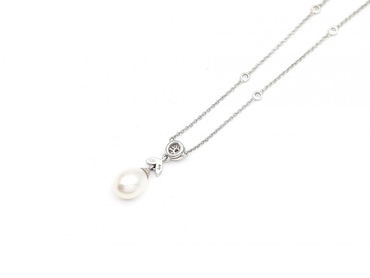 Edwardian style cultured pearl and diamond necklace in 18kt white gold.