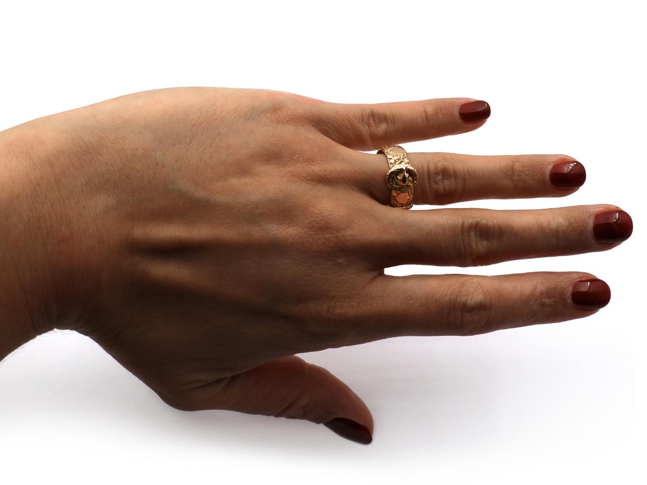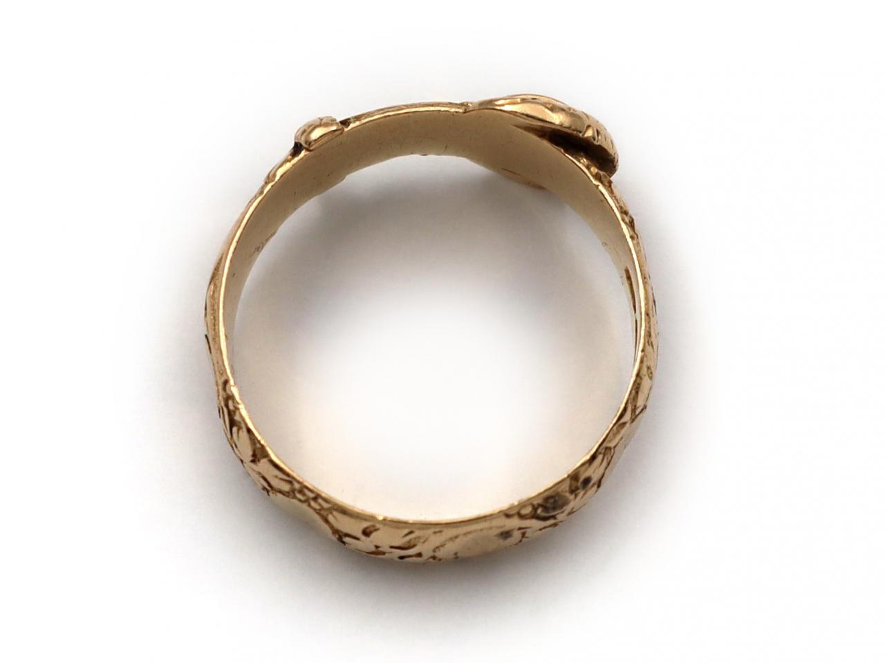 Edwardian 18kt Yellow Gold Carved Buckle Ring