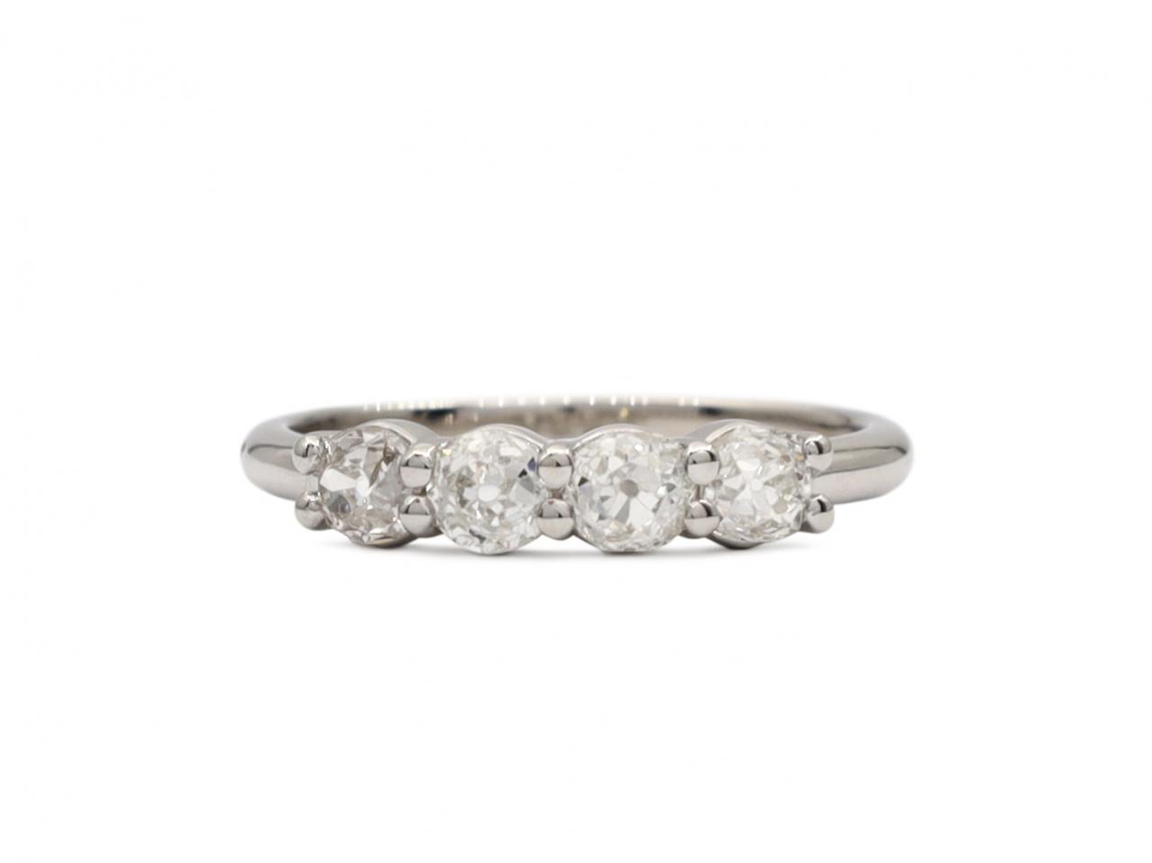 Four stone Old Mine cut diamond ring in platinum