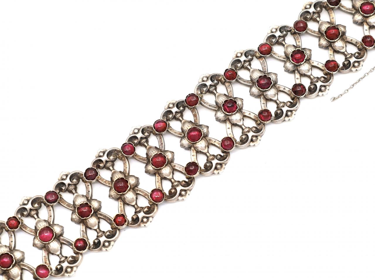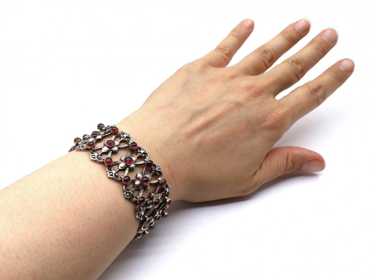 French Art Nouveau Silver & Gold Openwork Bracelet Set With Garnets French Art Nouveau Silver & Gold Openwork Bracelet Set With Garnets French Art Nouveau Silver & Gold Openwork Bracelet Set With Garnets