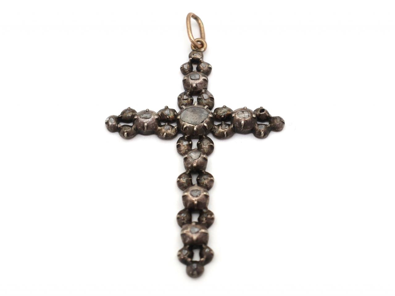 Georgian rose cut diamond silver and yellow gold cross pendant.