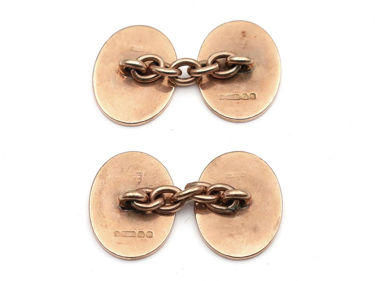 Heavy oval polished 9kt rose gold cufflinks. Hallmarked 9kt gold, Birmingham, 1922.