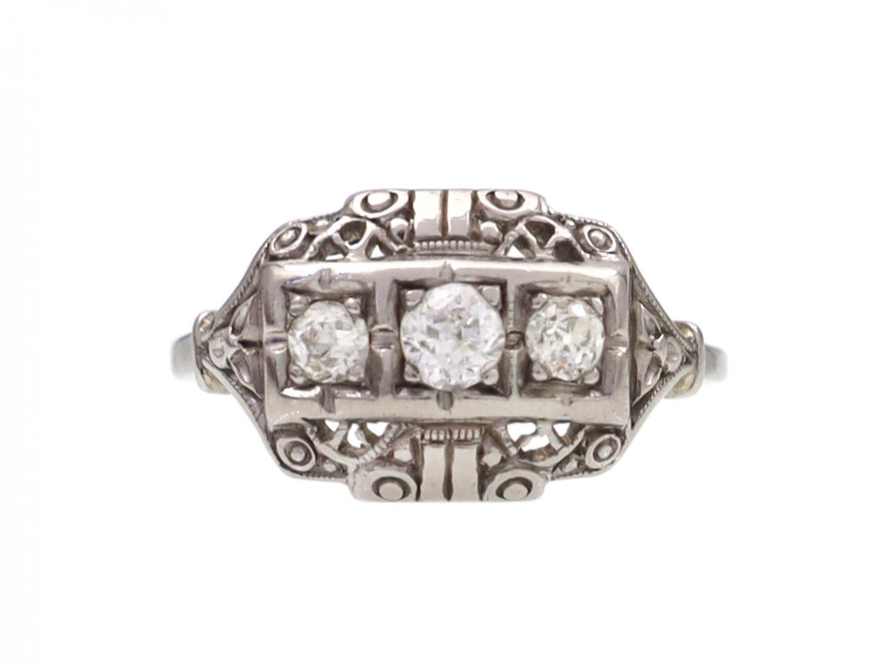 Long's Art Deco 18kt white gold and diamond three stone ring