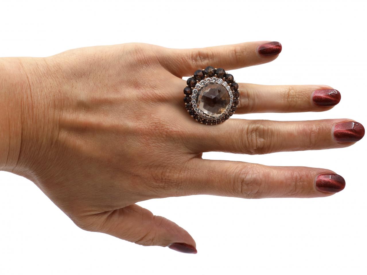 Modern smokey quartz and diamond cocktail ring in 18kt rose gold