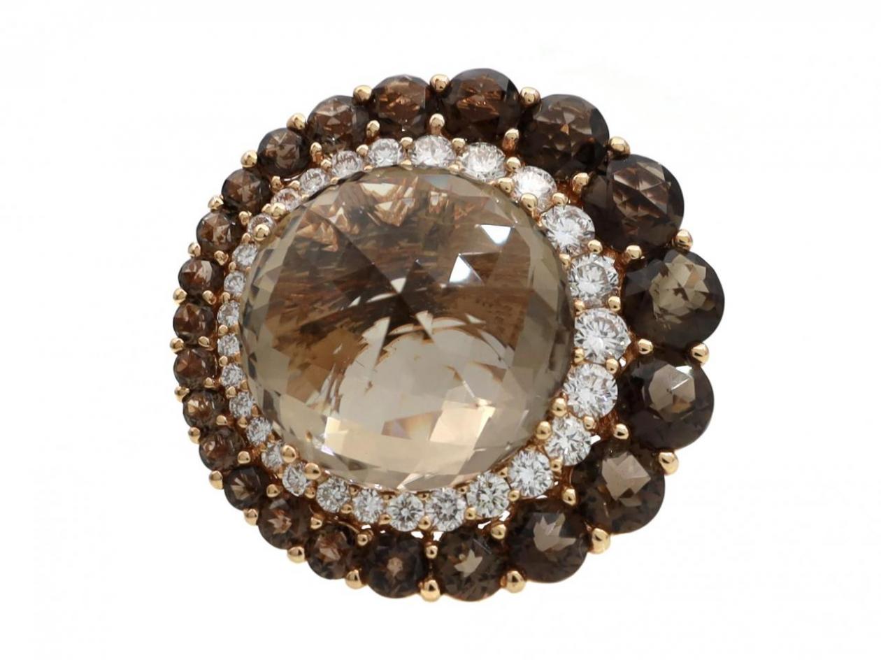 smokey quartz and diamond cocktail ring,