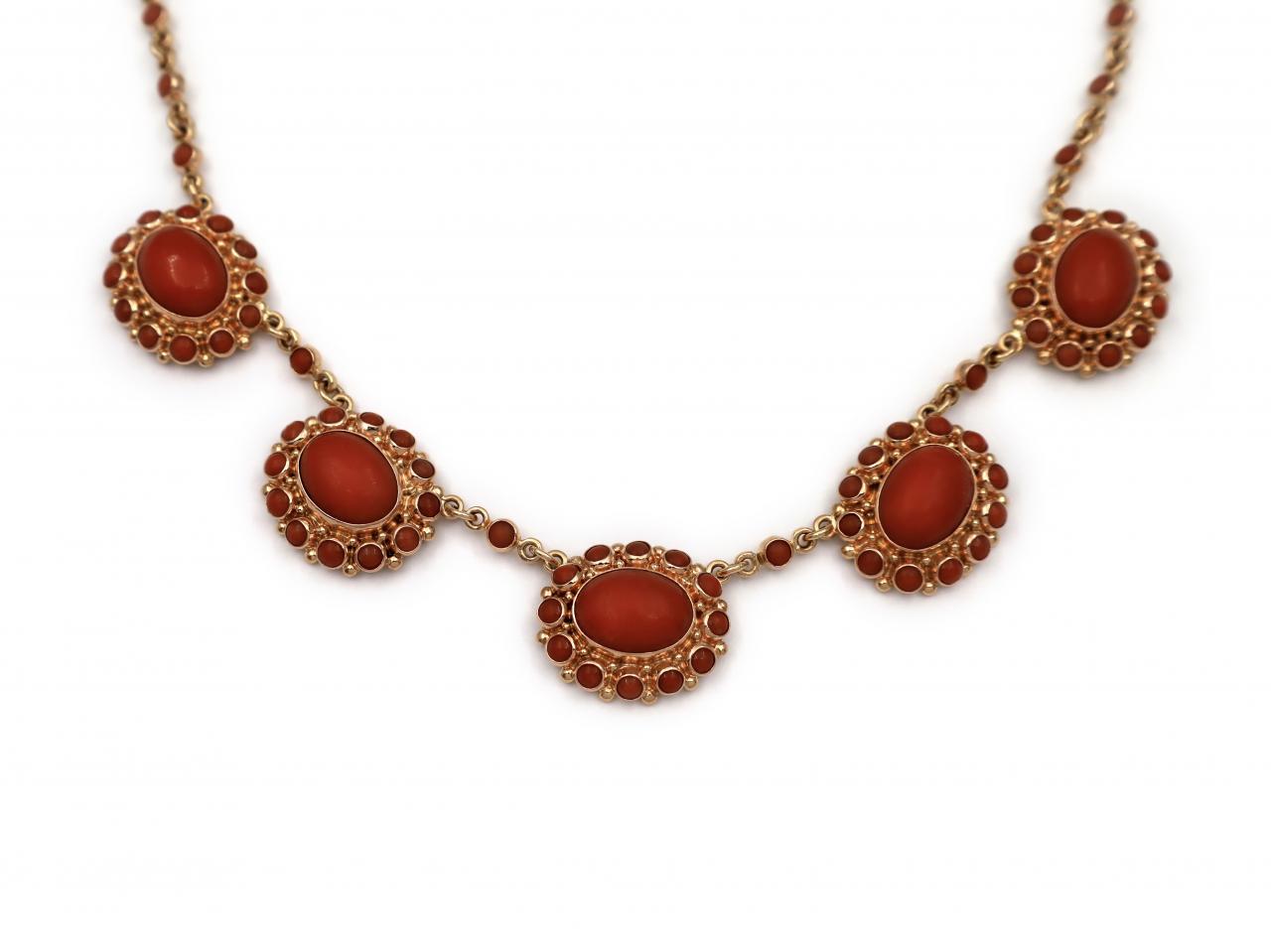 Neoclassical style floral coral cluster necklace in 14kt yellow gold.