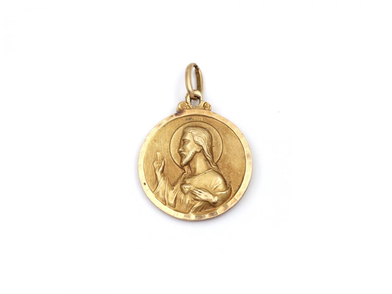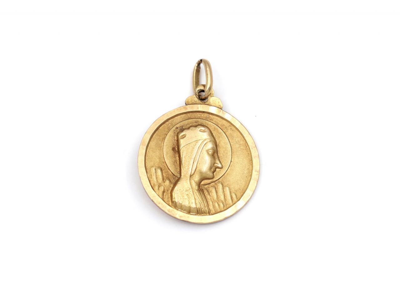 Religious 14kt yellow gold plated circular pendant.