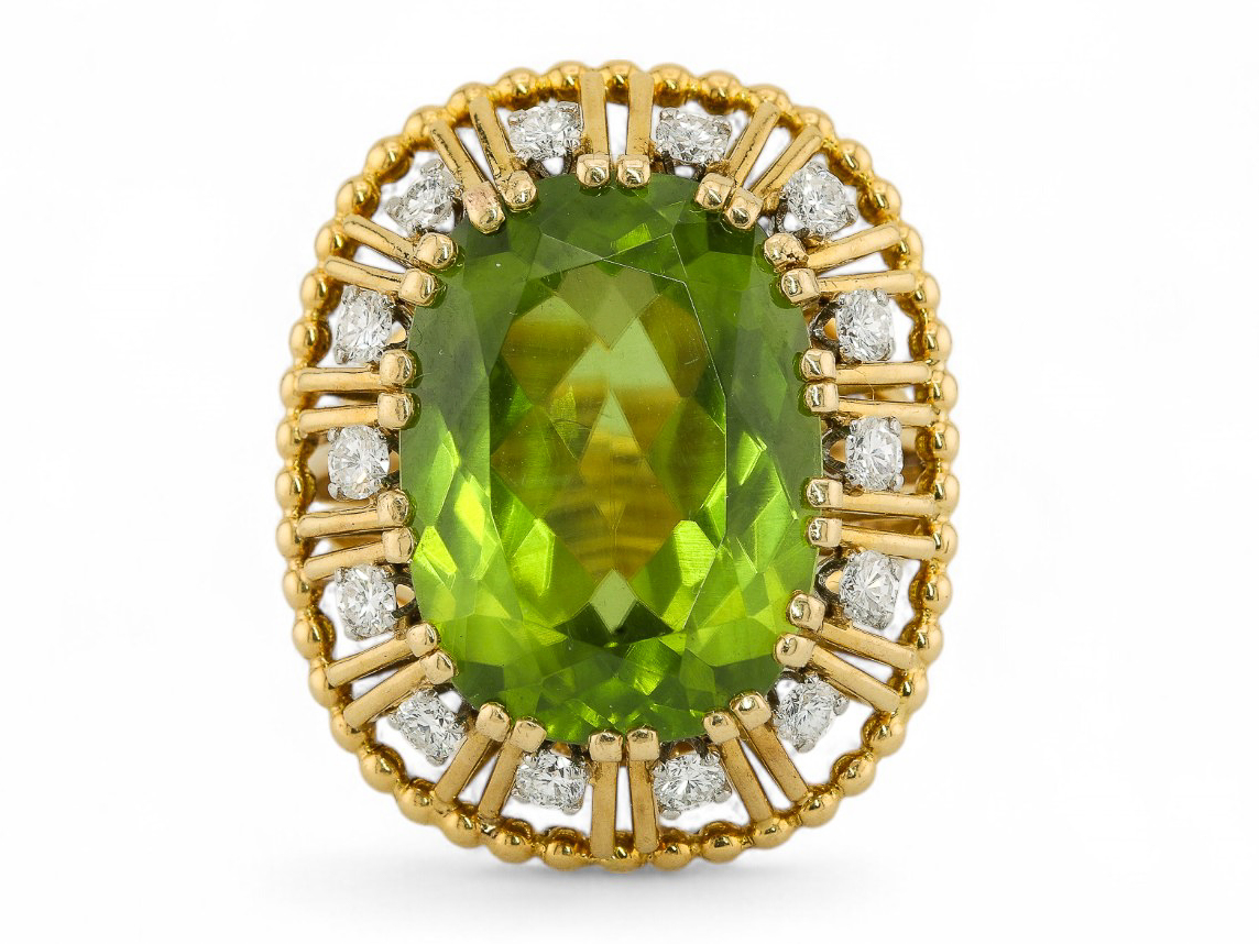 Retro 1950s peridot and diamond cocktail ring in 18kt gold Retro 1950s peridot and diamond cocktail ring in 18kt gold Retro 1950s peridot and diamond cocktail ring in 18kt gold Retro 1950s peridot and diamond cocktail ring in 18kt gold