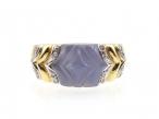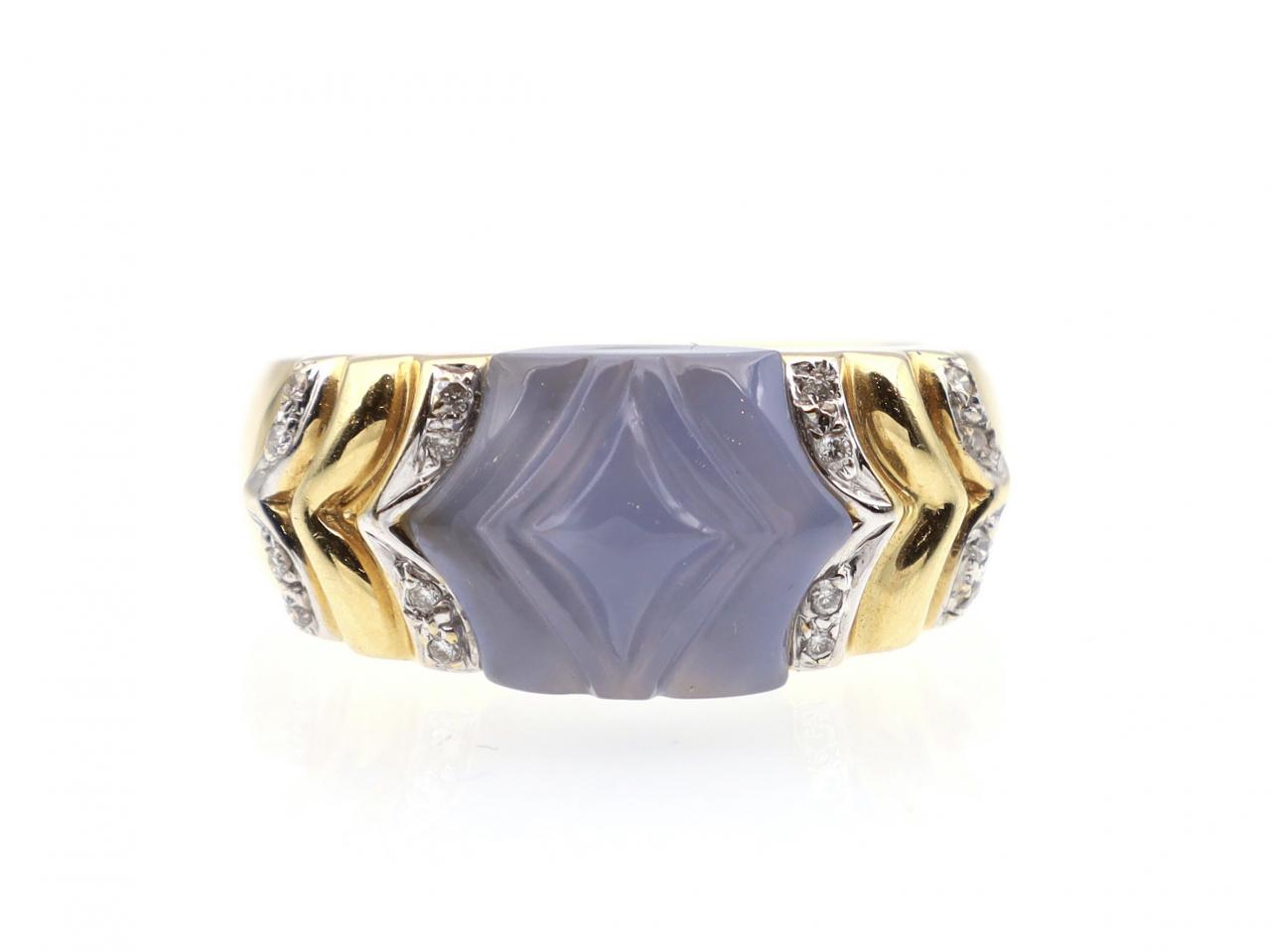 Retro carved chalcedony and diamond ring in 18kt yellow gold