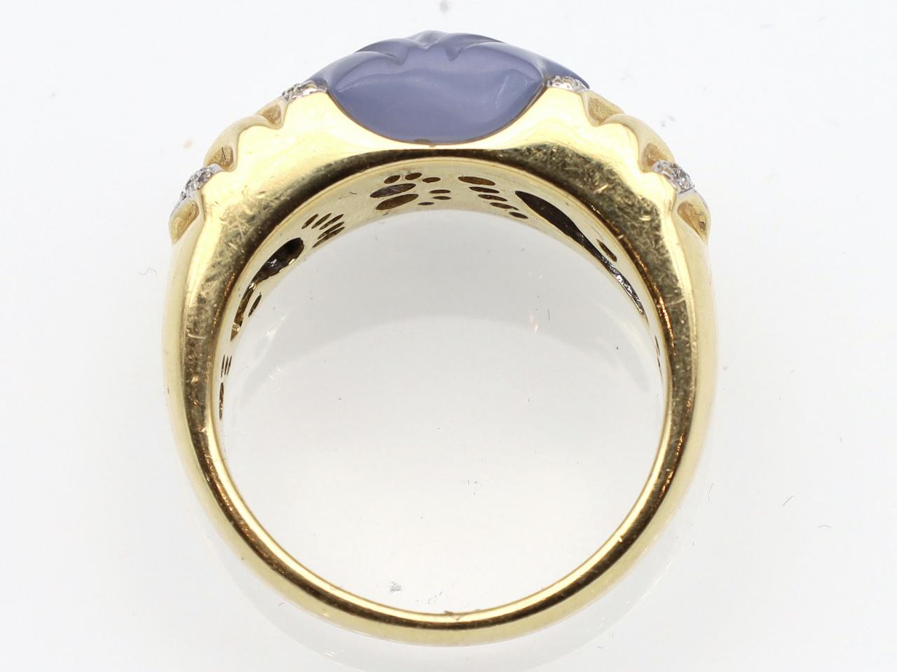 Retro carved chalcedony and diamond ring in 18kt yellow gold Retro carved chalcedony and diamond ring in 18kt yellow gold Retro carved chalcedony and diamond ring in 18kt yellow gold Retro carved chalcedony and diamond ring in 18kt yellow gold