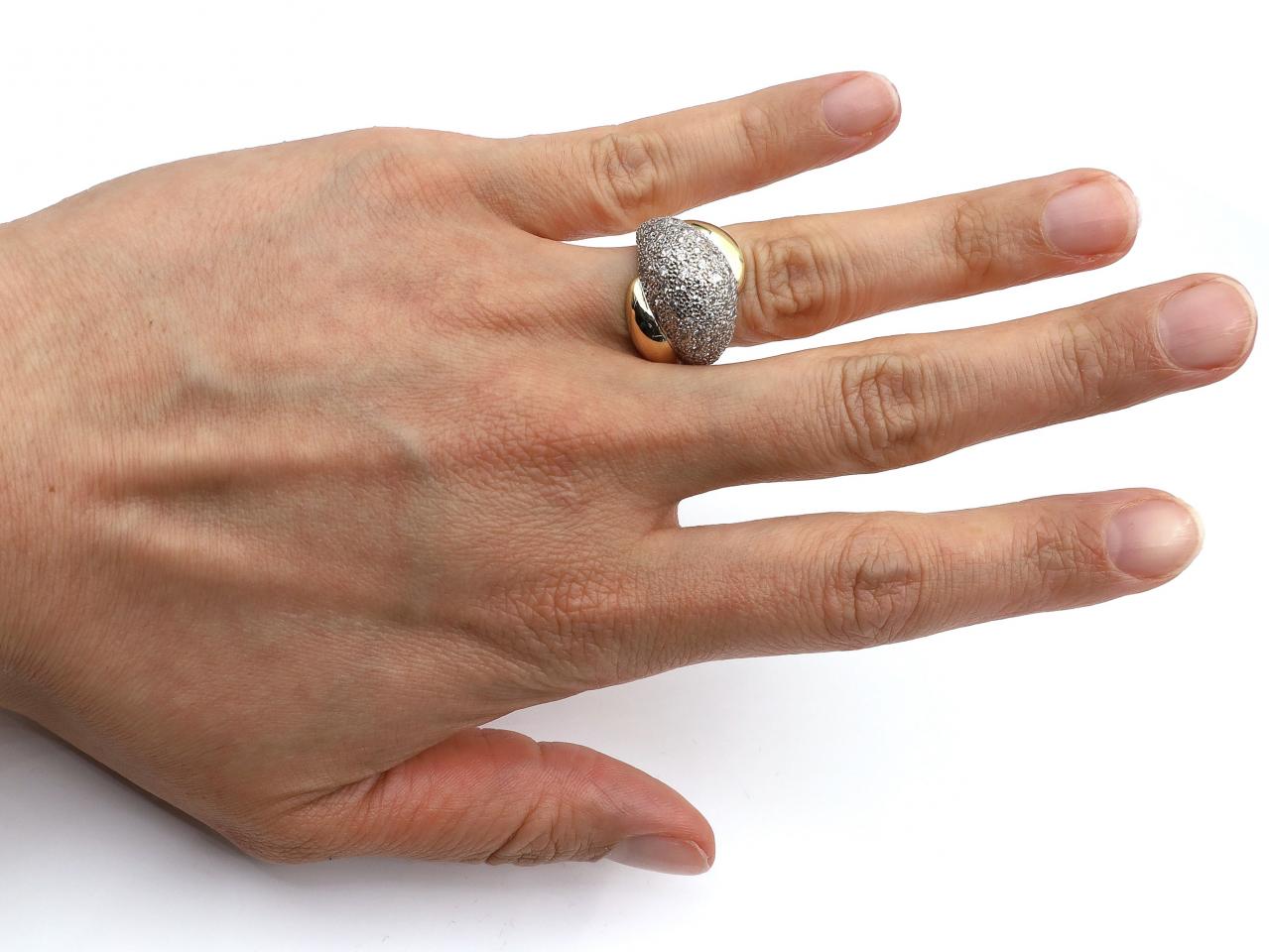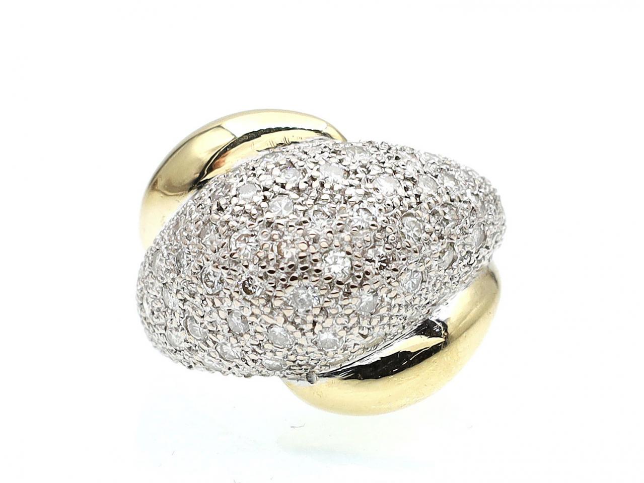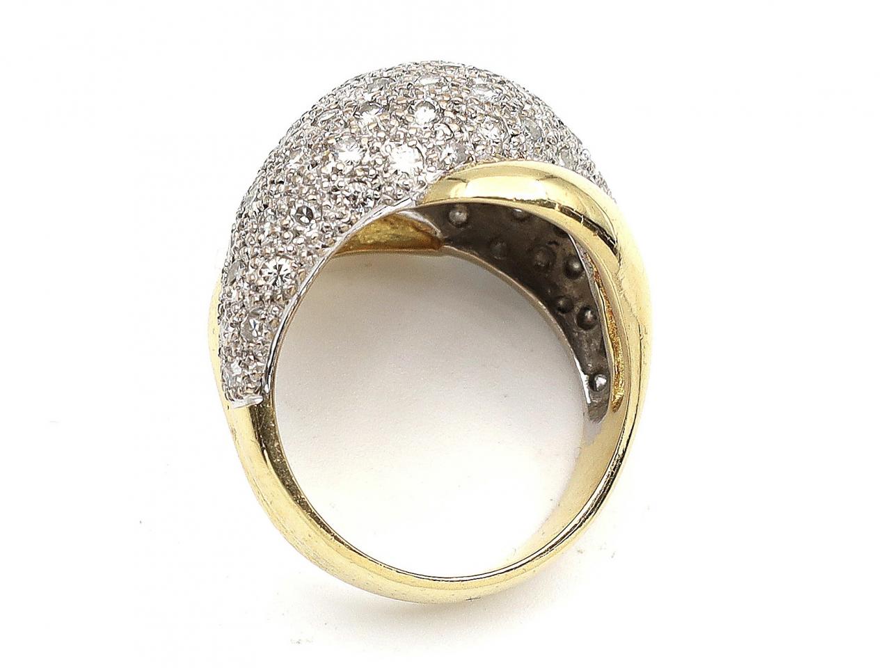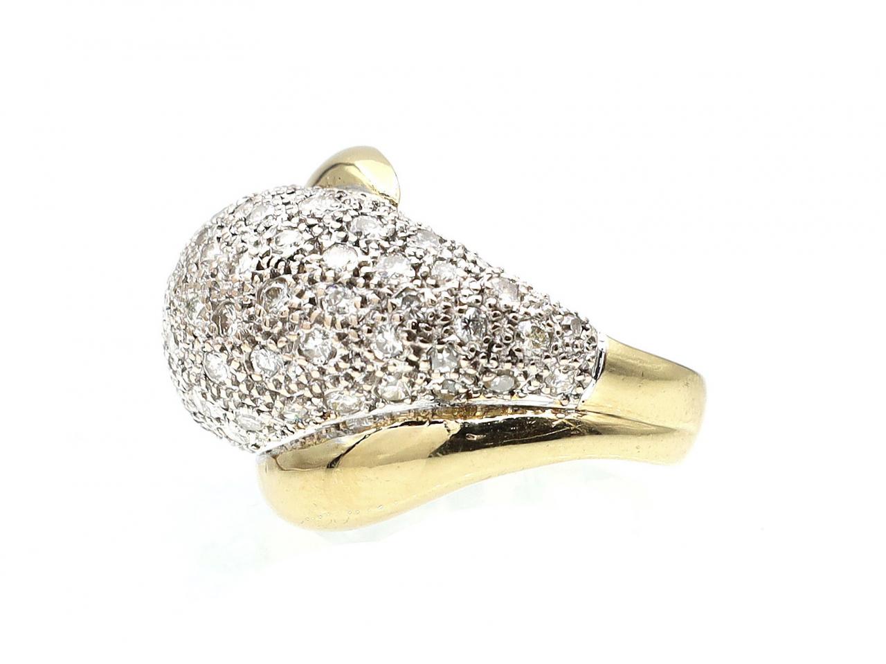 Retro diamond bombe cluster ring in 18kt yellow gold. Set with round eight cut diamonds in grain settings, to a three-dimensional bombe cluster with yellow gold twist shoulders which curve to a solid shank. Hallmarked 18kt gold, Iberian.