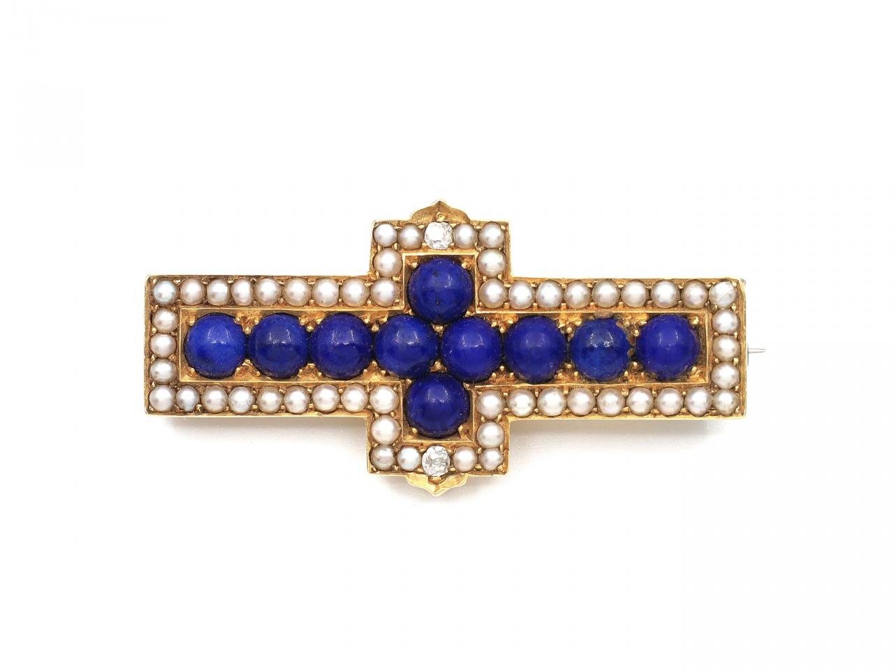 Victorian Lapis Lazuli, Seed Pearl & Diamond Cross Brooch Victorian Lapis Lazuli, Seed Pearl & Diamond Cross Brooch Victorian Lapis Lazuli, Seed Pearl & Diamond Cross Brooch